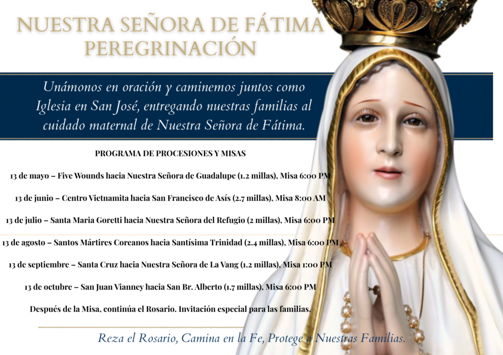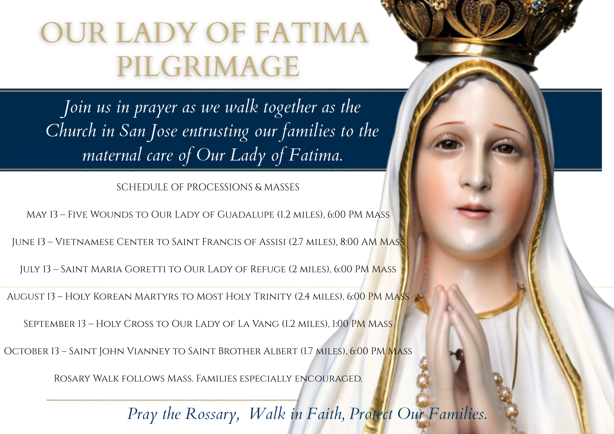 Join us in prayer as we walk together as the Church in San Jose, entrusting our families to the maternal care of Our Lady of Fatima.